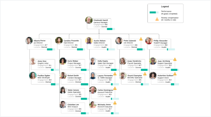 Zie in één oogopslag iedereen met wie je samenwerkt met onze tool voor het maken van organigrammen.