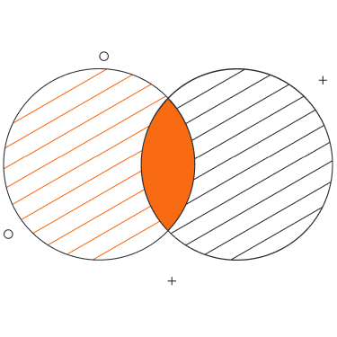 Vergelijk en zet je opties tegenover elkaar, zodat je de beste beslissing kunt nemen. De tool om Venn diagramen te maken in Lucidchart helpt je snel te zien wat je opties gemeen hebben en hoe ze van elkaar verschillen.
