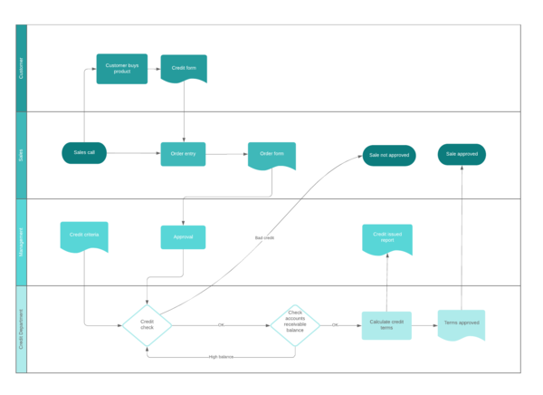 Maak een stroomschema in Lucidchart om een proces te documenteren. Daarna kun je het analyseren en het proces verbeteren voor efficiëntie en kwaliteit. Identificeer knelpunten, overbodigheden en onnodige stappen in een proces en maak het beter.