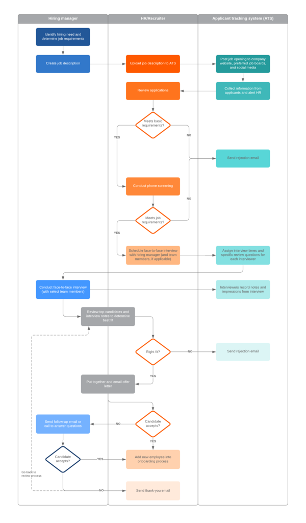 Gebruik stroomschema's om processen te communiceren voor het trainen van nieuwe medewerkers of andere teams in je organisatie. Als iedereen het proces kan visualiseren, kan iedereen het begrijpen en volgen.
