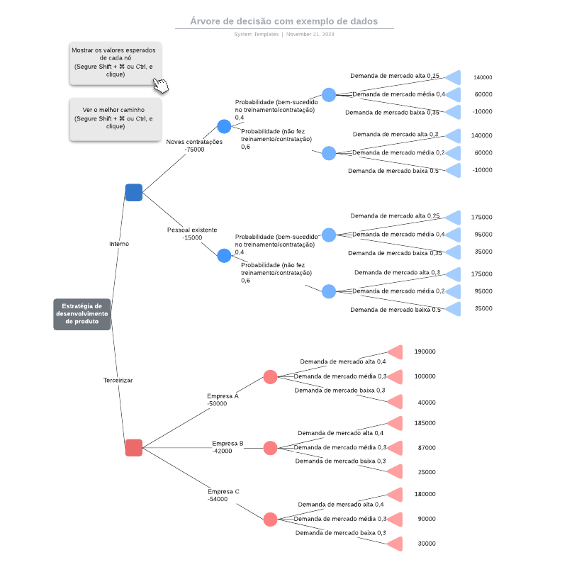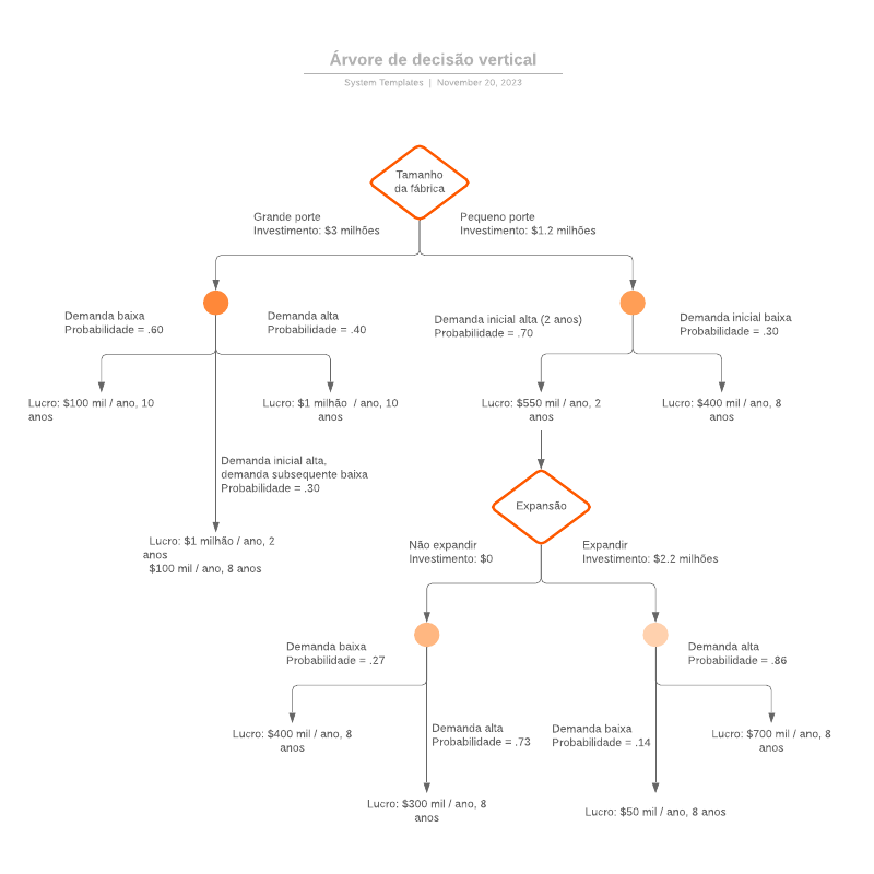 Use diagramas de árvore de decisão para obter respostas às suas perguntas. Elas podem ser simples ou complexas, dependendo de suas necessidades.