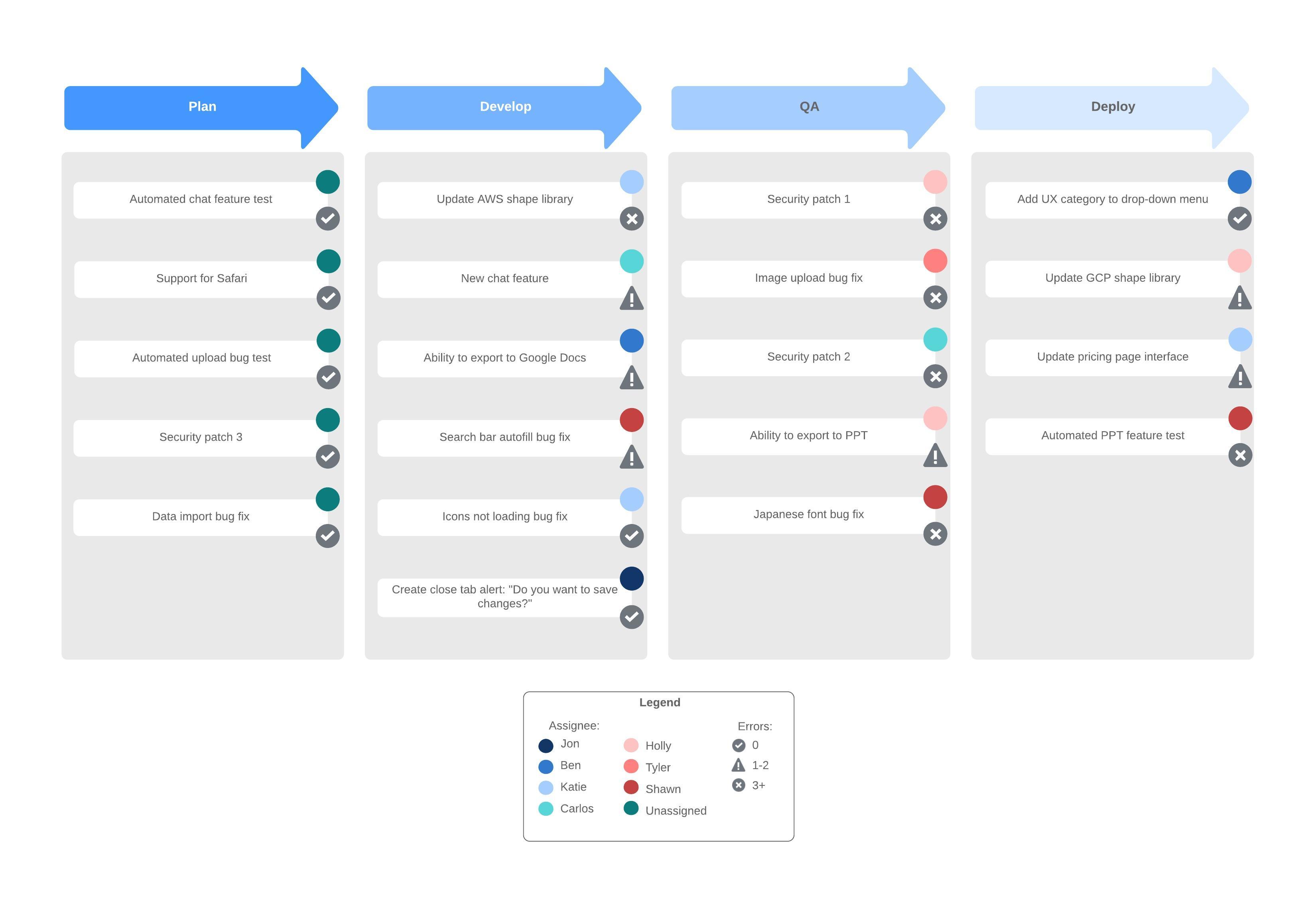 Pronto para usar uma plataforma verdadeiramente colaborativa, mas não está pronto para abandonar seus diagramas do Visio? Economize tempo e evite o trabalho dobrado importando-os para a nossa alternativa gratuita ao Visio online. Nosso recurso de importação permite migrar todos os seus arquivos VDX, VSDX e VSD para o Lucidchart. Uma vez na plataforma, você pode editar e reformatar o conteúdo do seu diagrama importado do Visio como quiser. Ao terminar, compartilhe seu trabalho por e-mail ou link publicado com facilidade, ou exporte para o Visio para aqueles que ainda não migraram.