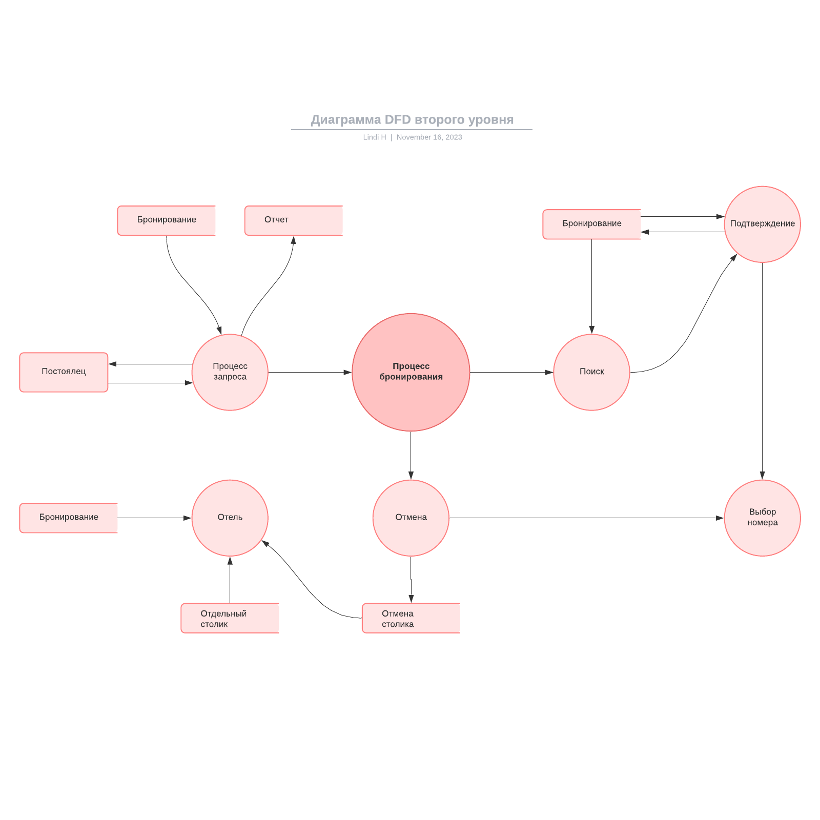 По необходимости можно добавлять новые детали в диаграмму и повышать ее уровень детализации.Достаточно добавлять более мелкие субпроцессы, попутно дополняя их необходимыми потоками и хранилищами данных.