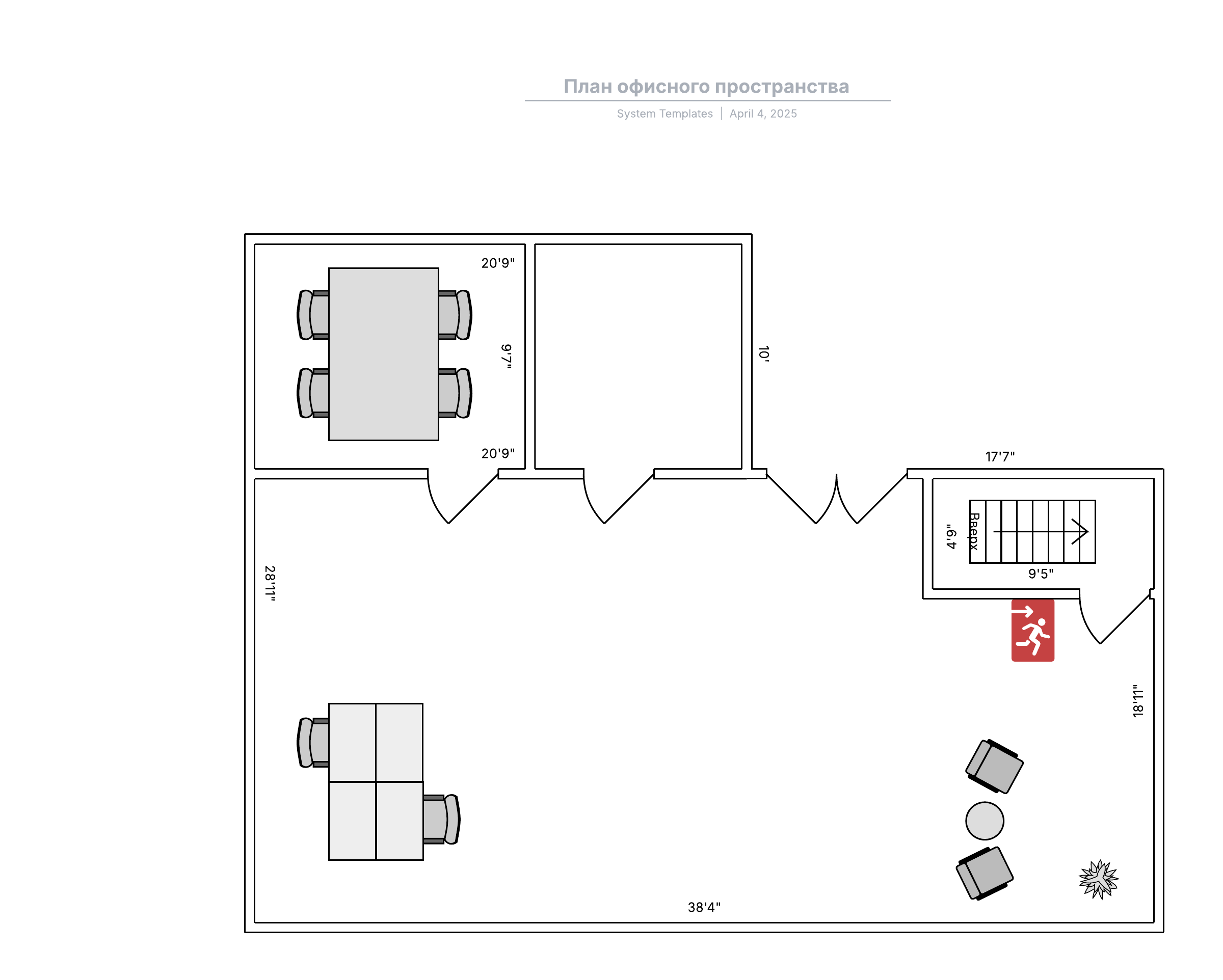 Гибкие шаблоны и обширная библиотека фигур позволяют легко и быстро воссоздать или перепланировать любое помещение. Просто выберите подходящий шаблон — для дома, офиса, конференц-зала, приемной или даже склада — и отредактируйте его под свои нужды. Добавьте обозначения для оборудования в кухню и ванную, бытовой техники, офисной мебели и прочих необходимых вещей, чтобы вышло красиво, удобно и практично.