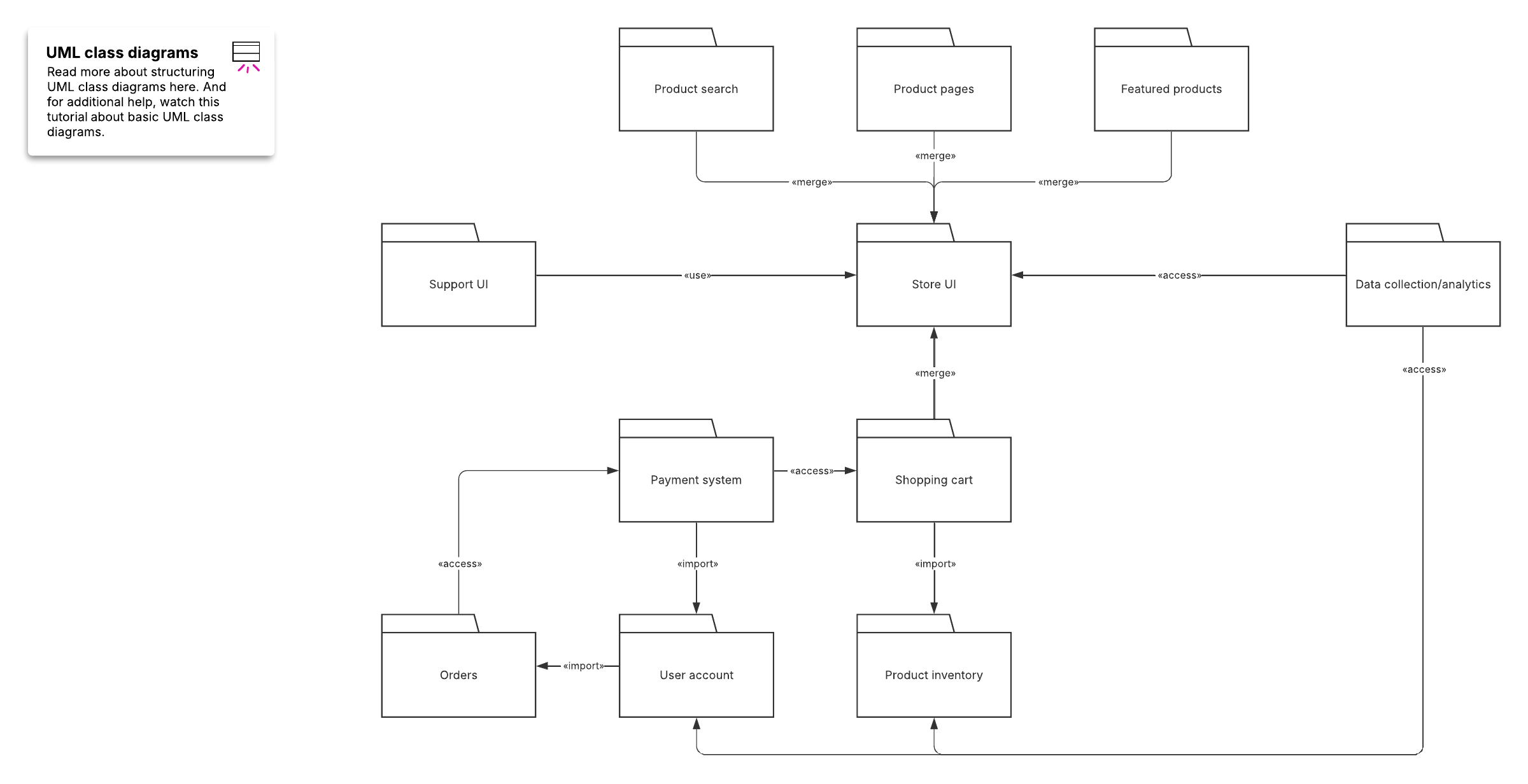 As we’ve shown earlier in this guide, packages are UML constructs that can be used to organize the elements within any UML classifier in a variety of UML diagrams. Package diagrams are most commonly found used in: