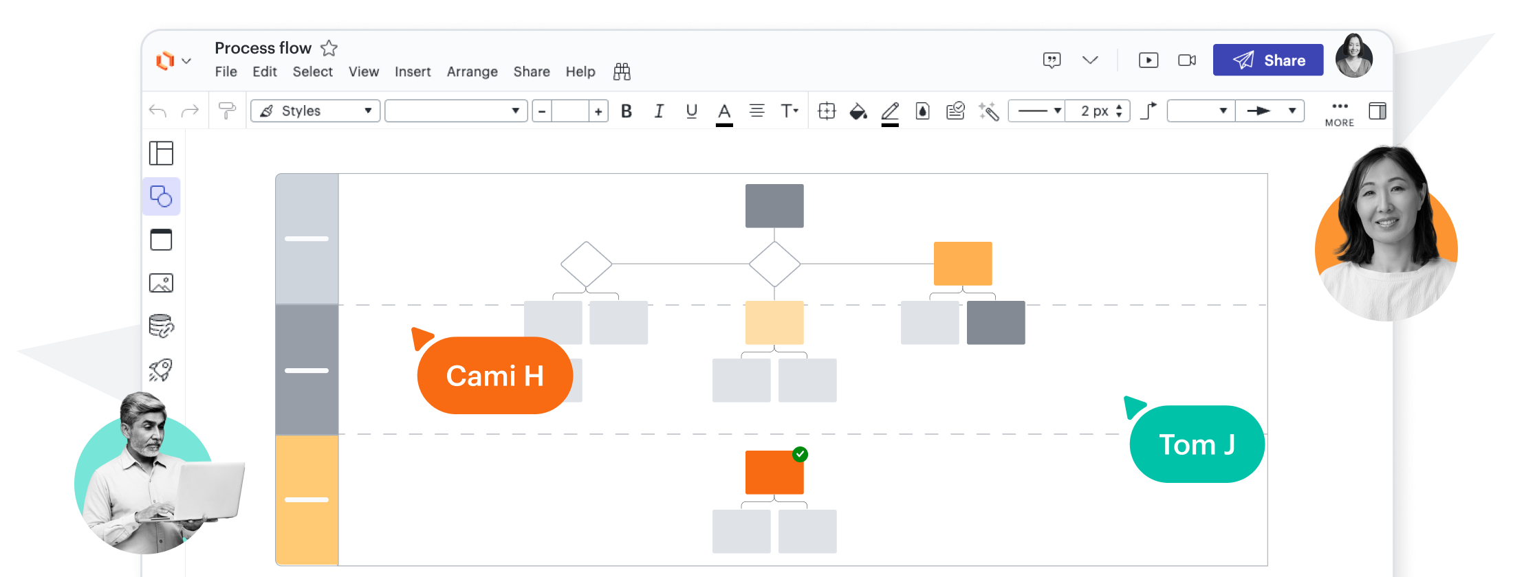Use Lucidchart’s intuitive styles to create personalized, visually appealing charts that enhance team understanding and clarity—regardless of your chart-making experience.