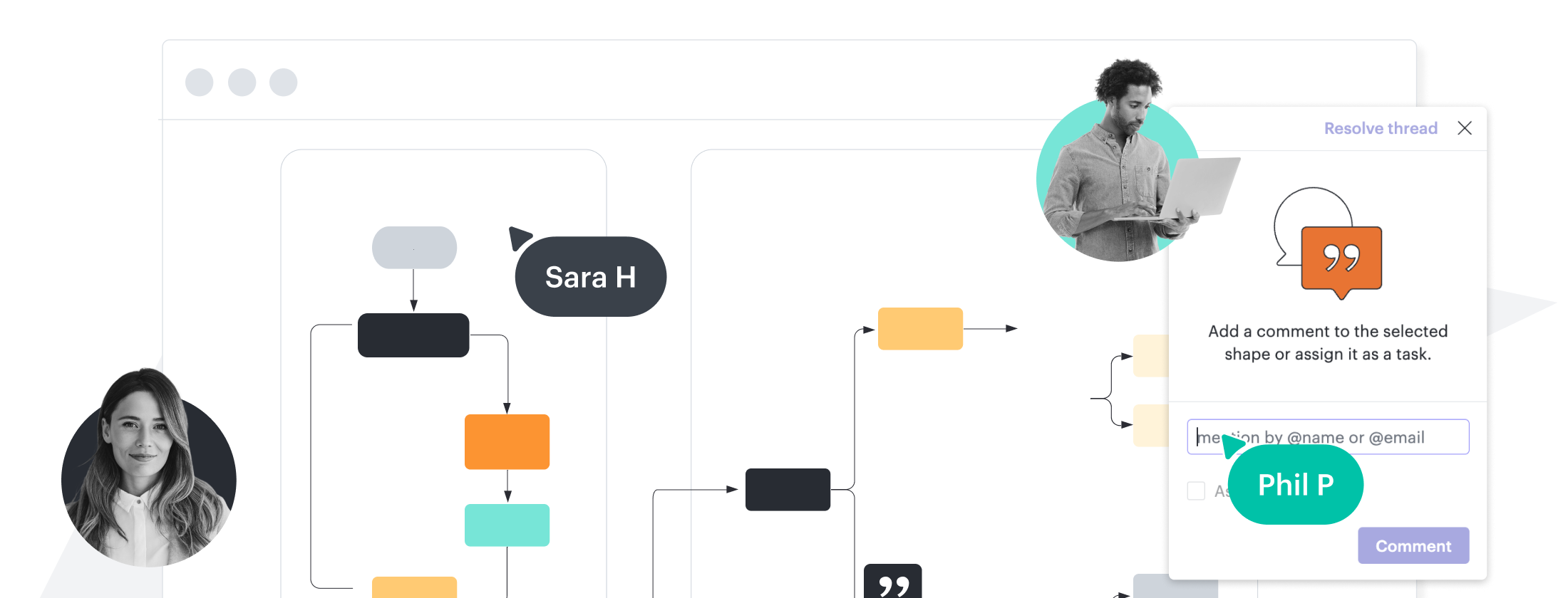 Streamline work by enabling multiple collaborators to create and edit the same diagram at once.