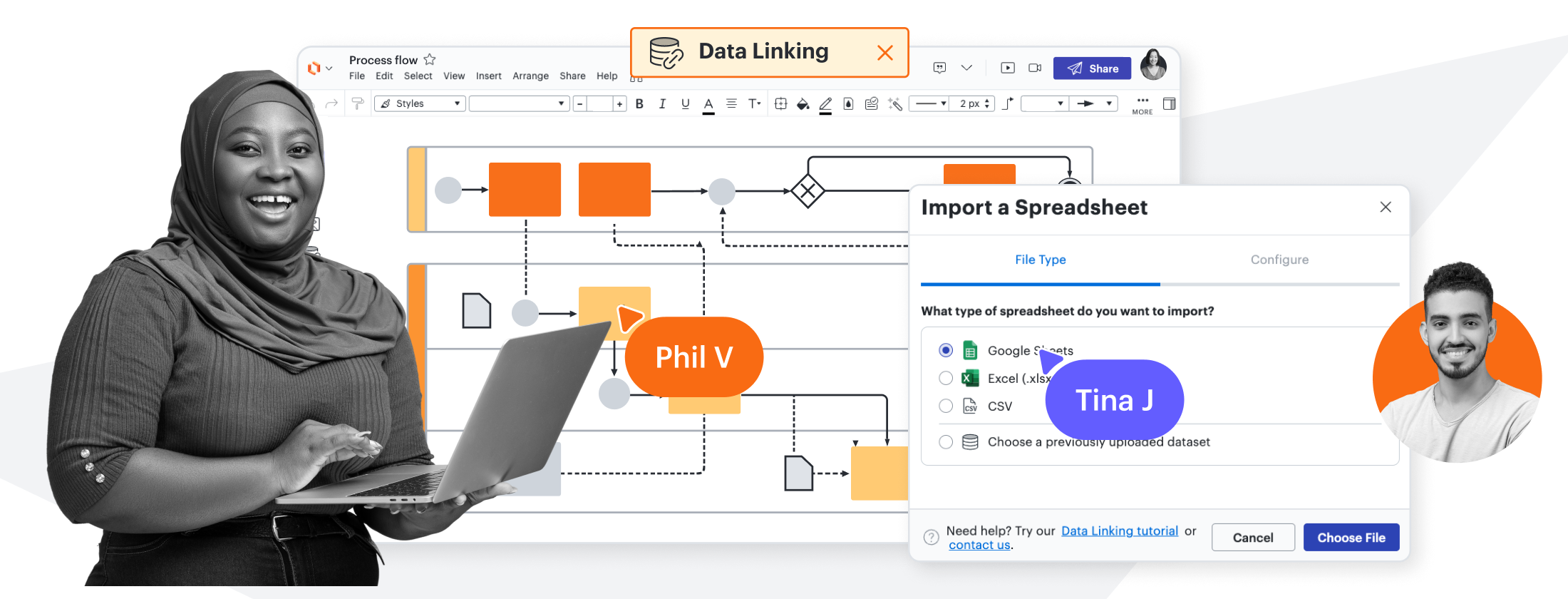 Enhance accuracy by linking visualizations to data within Google Sheets, Excel, or CSV files.